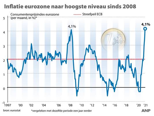 Inflatie. It is the highest reading since July of 2008 as the bloc battles surging energy costs while supply shortages persist. Dat zegt je misschien niet zo veel maar je voelt het wel in je portemonnee. De inflatie in de eurozone is in augustus gestegen tot 3 procent dat is het hoogste niveau sinds november 2011.