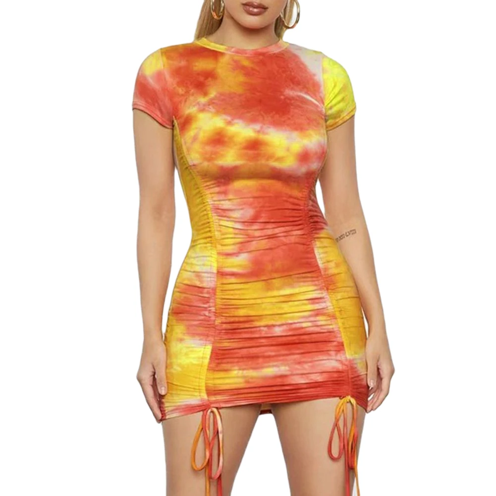 Tie Dye Drawstring Dress Women Bodycon Short Sleeve Sexy Party Sundress Female Mini Clubwear Skinny Vestidos Dresses Aliexpress
